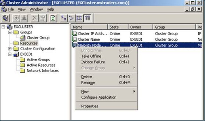 LAB: Exchange 2007 CCR on 2k3 – Part3 Cluster Service Status
