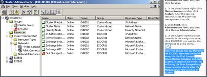 LAB: Exchange 2007 CCR on 2k3 – Part7 Add Cluster admin permission
